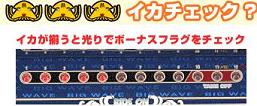 メーカー;山佐 BIG WAVE 機種説明 BIG確率が設定1から6まで全て 1/240という台であった。 多彩なリーチ目にイカが揃うとイカチェックというランプでの ボーナスチェックがあった。 払い出しもないのにいつも左に3連のイカを狙っていた記憶がある。